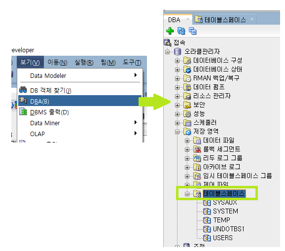 🔸 테이블 스페이스 만들어주기 (create tablespace) - 기존 테이블 스페이스 활용