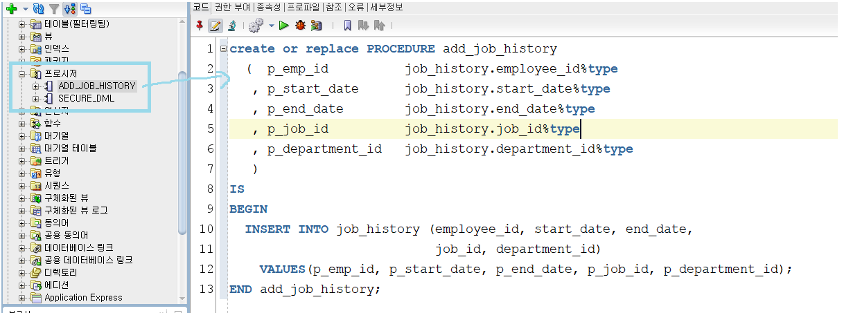 execute new_job_proc('sm_man1', 'sample test'); -- 매개변수의 개수가 일치하지 않기 떄문에 에러가 난다.