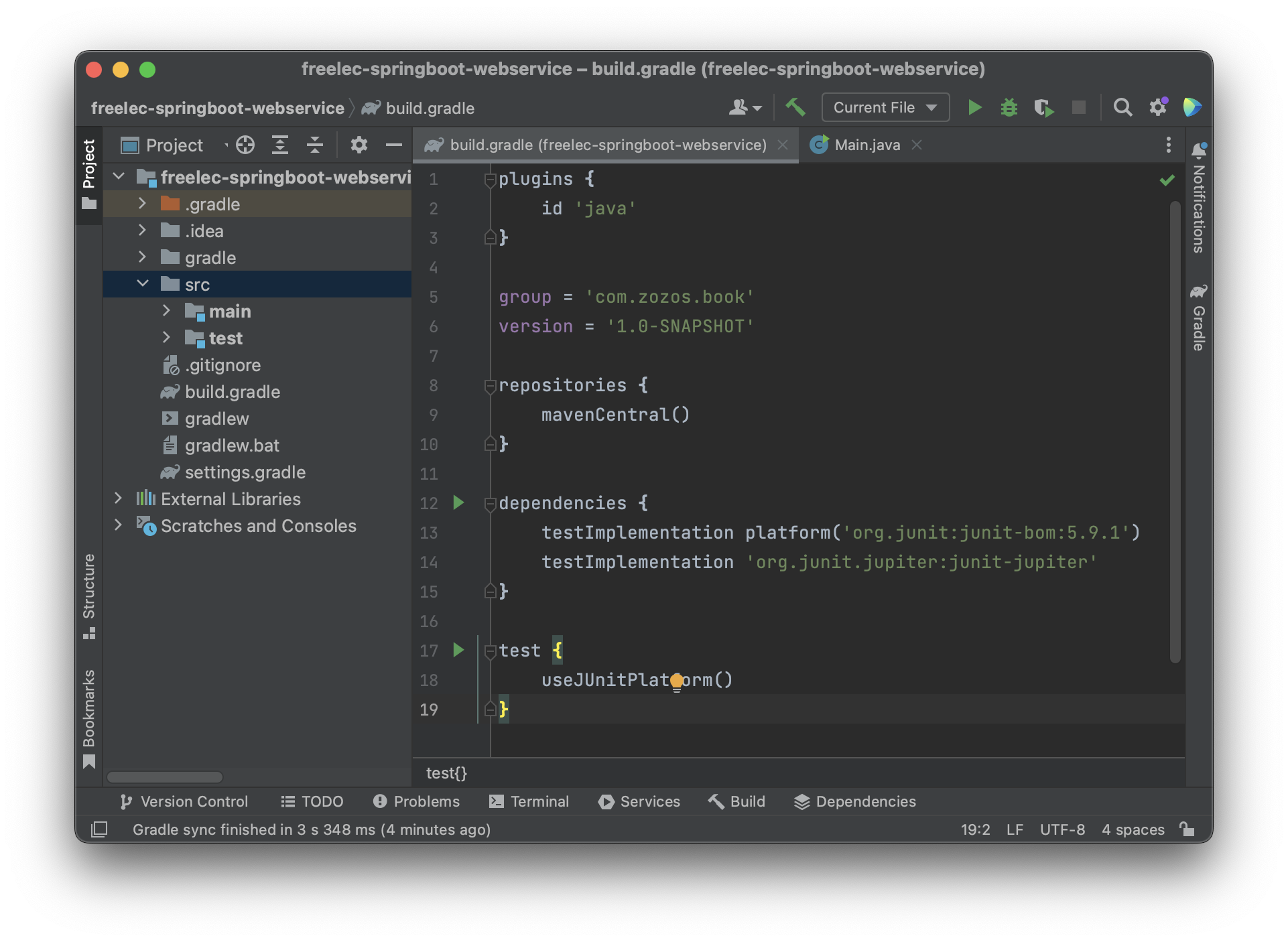 org.springframework.boot:spring-boot-web과 org.springframework.boot:spring-boot-starter-test를 받도록 선언해주었다.